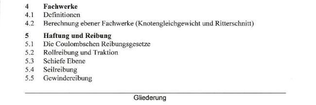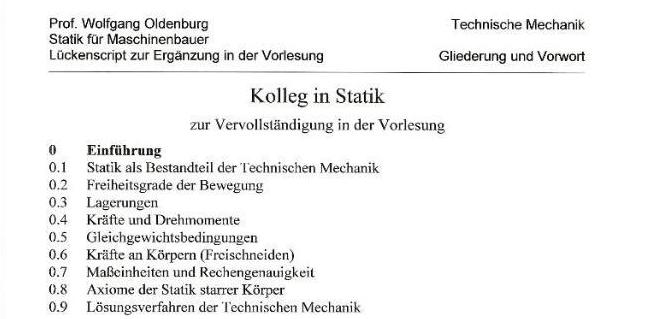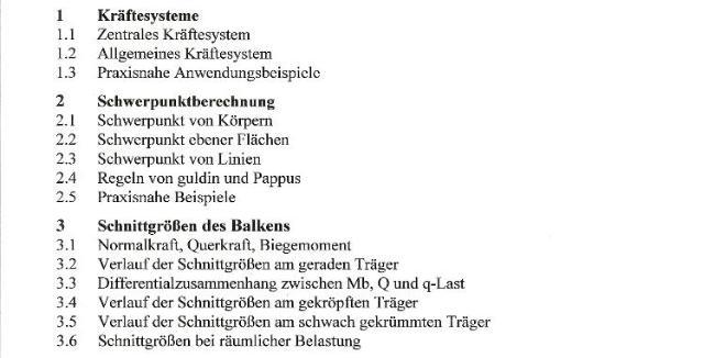 Zur Information wird hier in Kurzform die Gliederung des Statik-Kollegs angezeigt: